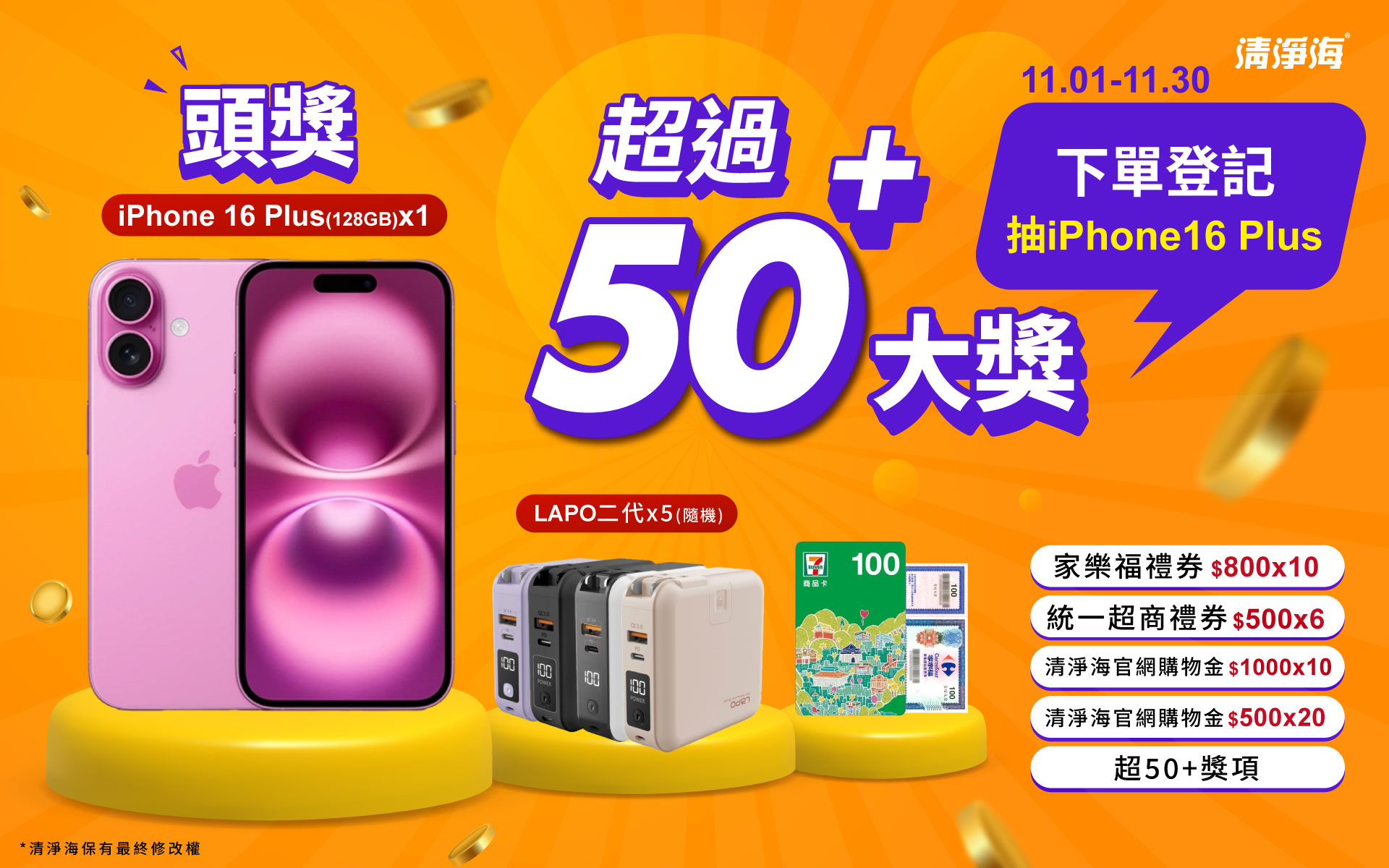 - 中獎者主動私訊清淨海官方LINE https://page.line.me/awq4980u